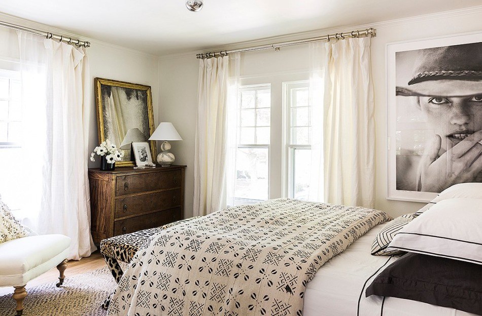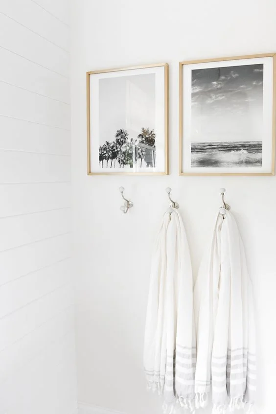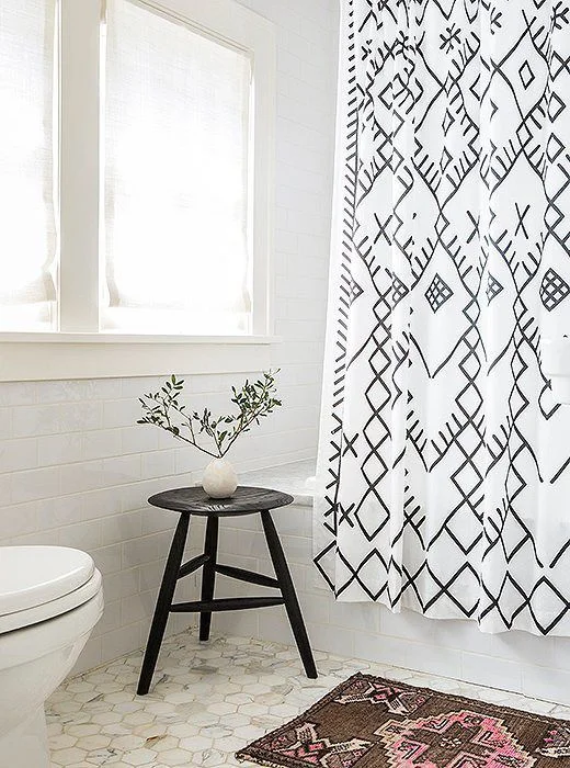 I'm not a huge fan of color, but an all-white space can read pretty boring. I like to add contrast with different textures, whether it's glass, rustic wood (like the ladder, above), chunky jute weaves, slate and more. I've been really into Moroccan rugs and patterns to add some interest to the space.